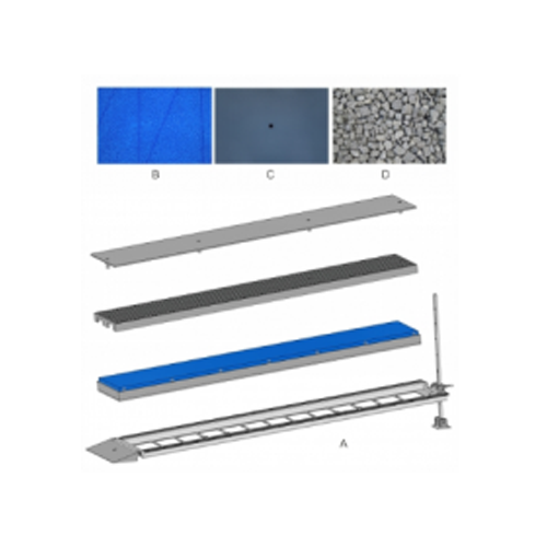 Playas para el canal experimental HM 162: simulación de olas en diferentes playas: playa plana impermeable, playa irregular impermeable y playa con superficie permeable. Simulación de diferentes ascensos mediante el ajuste de la inclinación del marco. Todos los componentes están fabricados con materiales resistentes a la corrosión.