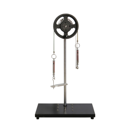 La transmisión por correa SR6139 permite la investigación de las transmisiones por correa y la fricción de las correas experimento por experimento. El núcleo del dispositivo experimental es una polea de hierro fundido con ranuras para correas trapezoidales y planas en su circunferencia. La polea está montada sobre rodamientos de bolas y se acciona mediante una manivela. Su masa de volante facilita la rotación uniforme de la polea. La correa roza contra la polea con un ángulo de envoltura de 30° a 180°. El ángulo de envoltura se puede ajustar en incrementos de 15°. Dos dinamómetros de resorte detectan la tensión en los extremos individuales de la correa. Esto permite ajustar con precisión la tensión de la correa mediante un husillo roscado.
